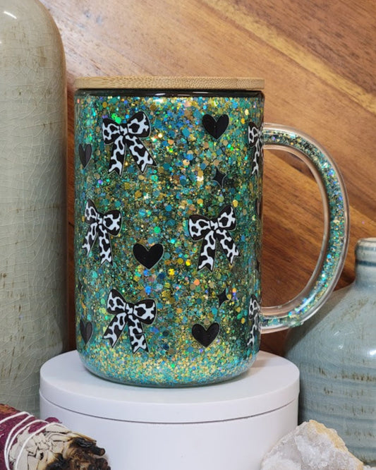 15 Oz Mama Cow Print Motionless Glitter Snow Globe Coffee Mug