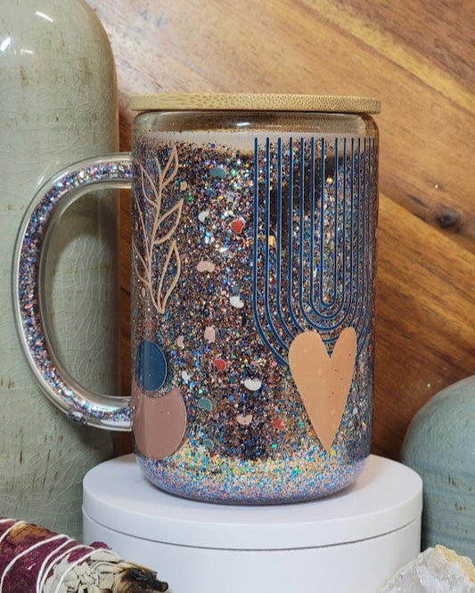 15 Oz Leaves & Hearts Motionless Glitter Snow Globe Coffee Mug