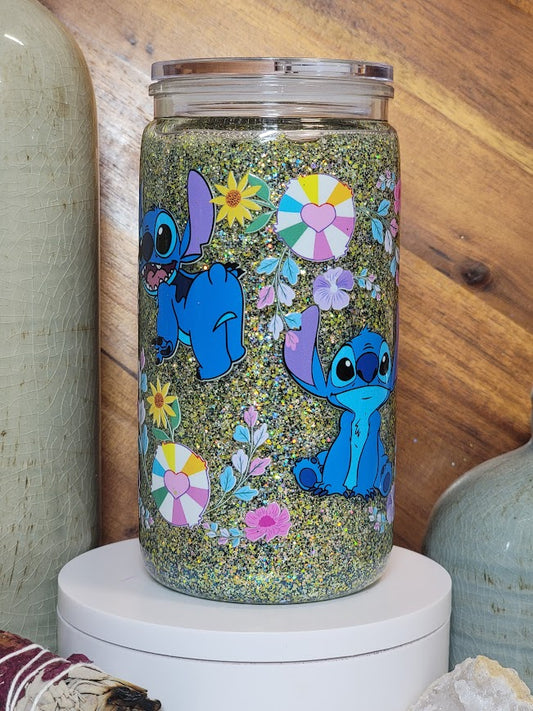 16 Oz Blue Alien Spring Slow Flow Glitter Snow Globe Acrylic Libby Cup