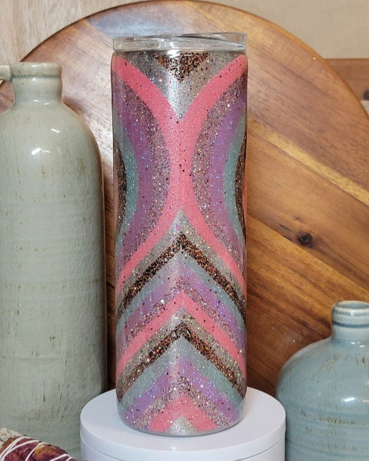 20 Oz Skinny/Straight Concentric Hearts Template Glitter Tumbler