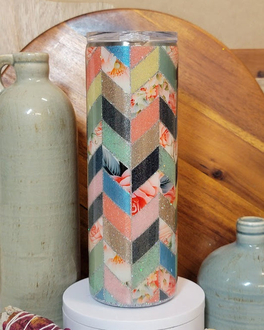 20 oz Skinny/Straight Poke Fabric And Glitter Tumbler