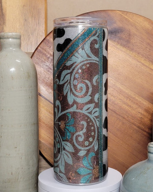 20 Oz Skinny/Straight Cow Print Template Glitter Tumbler