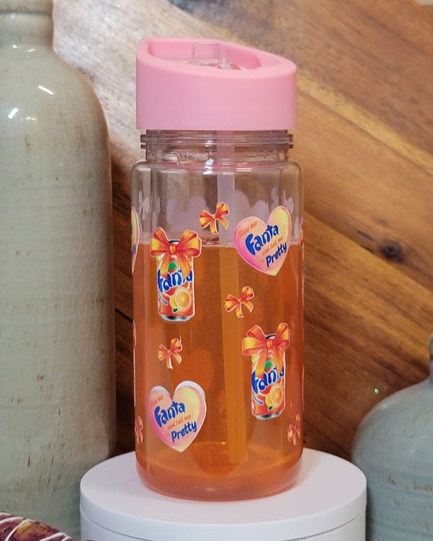 12 oz Orange Soda look with Ribbons kids acrylic snow globe water bottle.