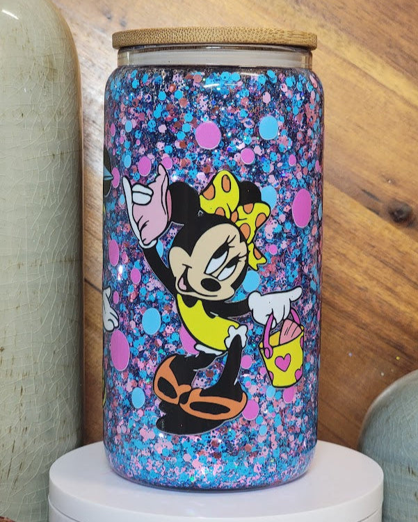16 oz Summer Girl Mouse slow flow glitter snow globe libby cup with lid and straw.