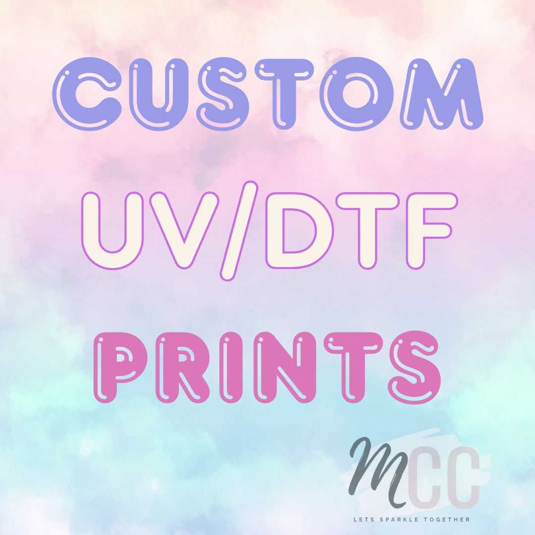 We now offer custom UV/DTF printing. Send us an email @ mimicreates24@gmail.com with the PNG image of the decal you would like printed. Please include your order number in the email. Libby wraps will be printed at 9.4" wide by 4.2" high. For decals specify the size up to a maximum of 5" x 5". We will then print out 5 copies and send them to you. Note: We cannot print copyrighted images.